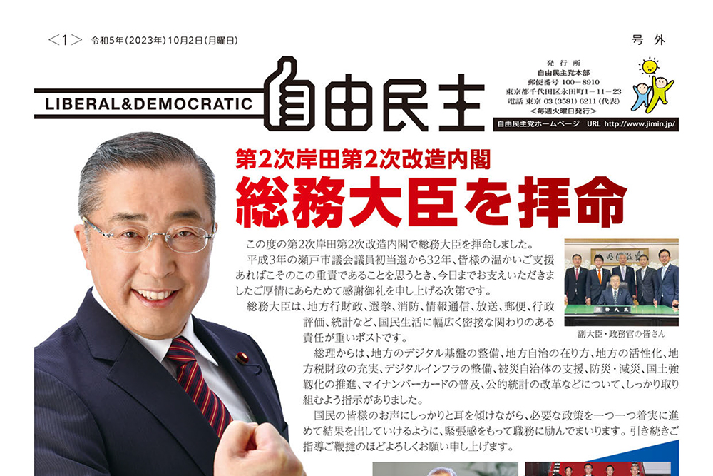 - 第49回衆議院議員選挙で、6回目の当選(愛知7区)